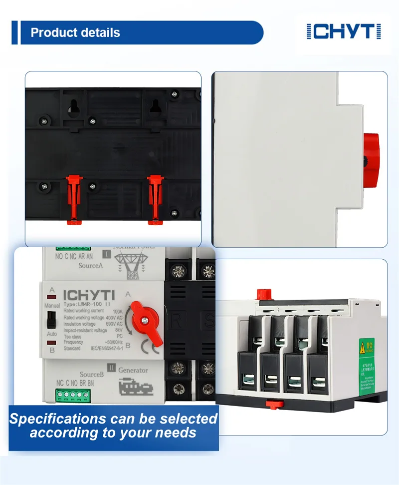 중국 공장 ICHYTI 도매 구매 할인 단상 자동 전환 스위치에는 대기 전원 공급 장치, 백업 전원 공급 장치, 전력망 및 발전기의 자동 전환을 포함하여 3상 4선식 전력망의 전원 공급 시스템에 세 가지 스위칭 기능이 있습니다. 두 전원의 3상 전압 실효값과 상 전압 실효값 및 위상을 실시간으로 감지할 수 있으며, 어느 상의 과전압, 저전압 또는 결상이 발생한 경우 비정상 전원에서 정상 전원으로 자동 전환할 수 있습니다.